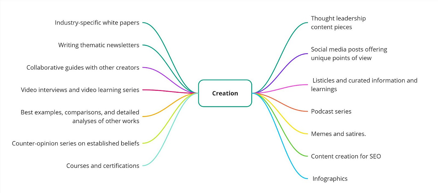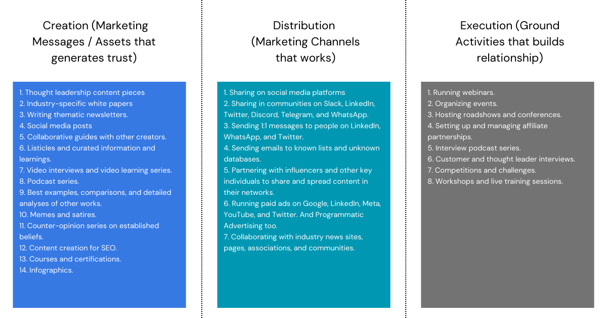 Thought leadership initiatives like interview series, weekly newsletters, customer case studies, and white papers.