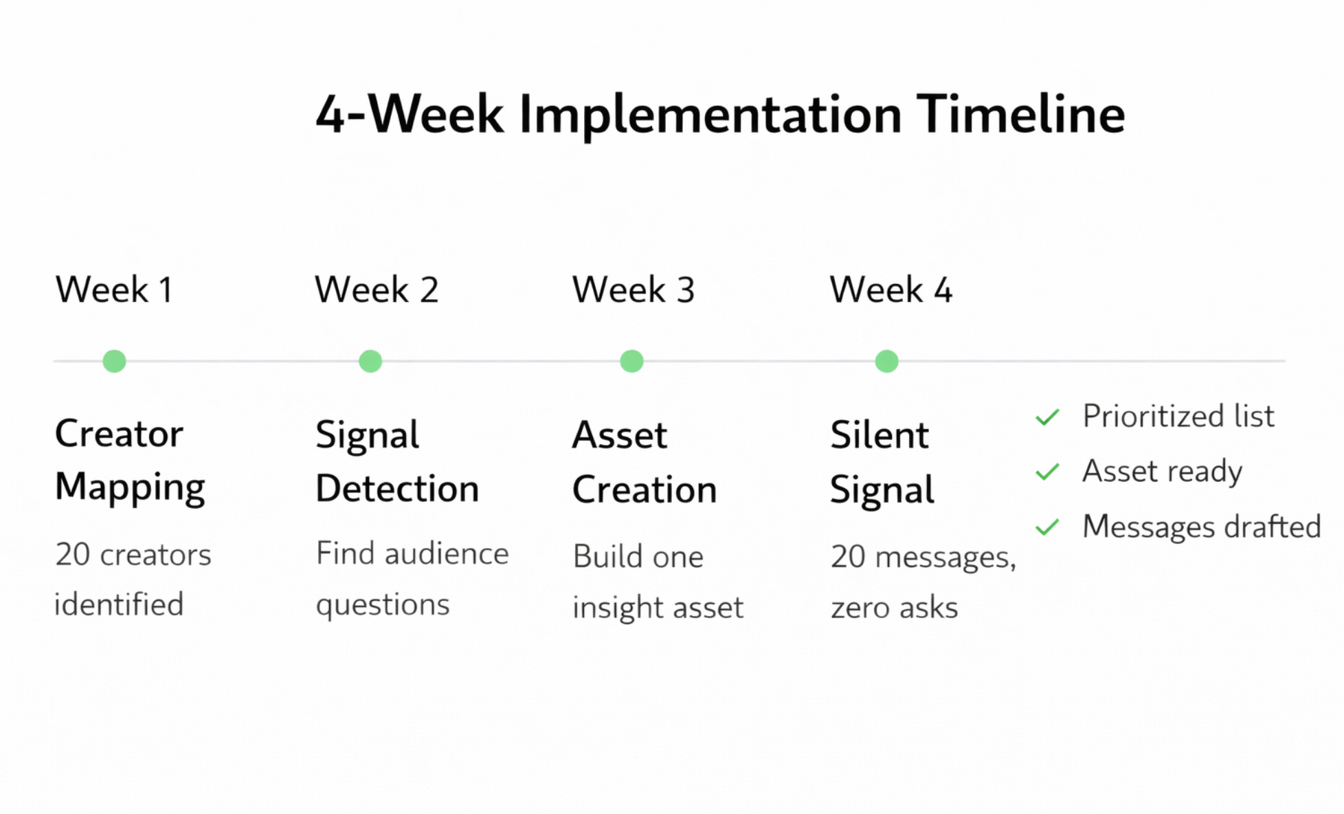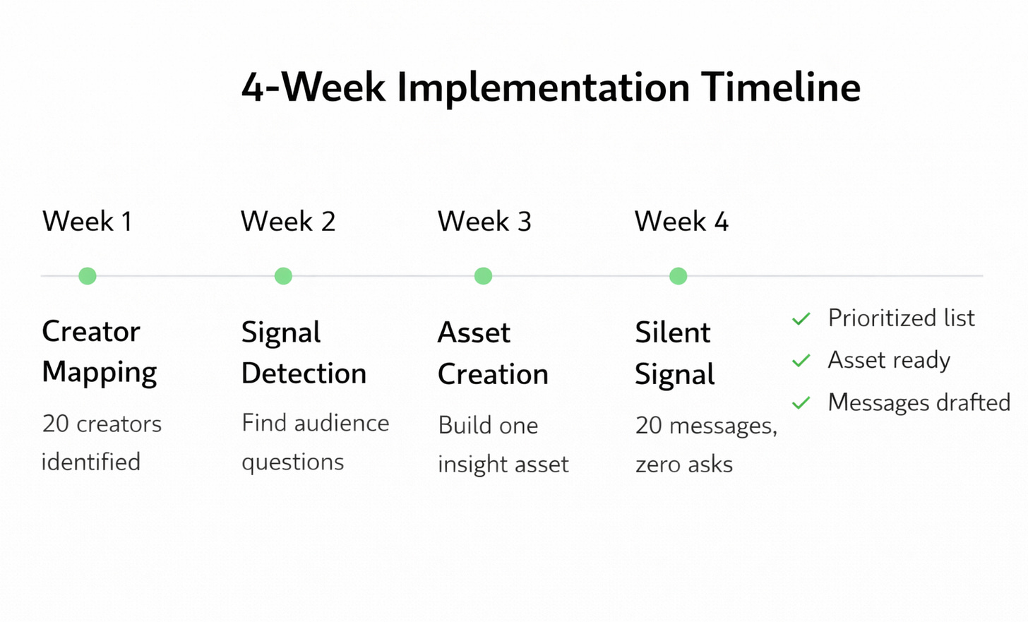 Week 8: Creator reached out asking to co-author a deeper piece. Their audience became a pipeline.