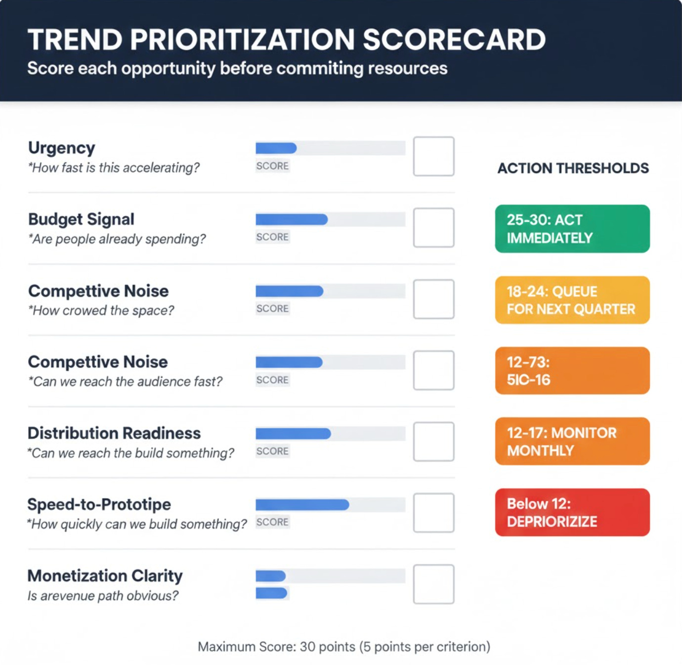 - Competitive gap (what’s missing from current contentThe Trend Prioritization Scorecard